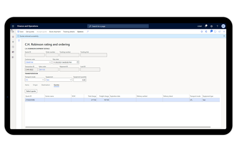 Sparen Sie Zeit und Geld. Greifen Sie auf Echtzeittarife und Frachttransparenz direkt in Dynamics 365 Finance and Operations zu.