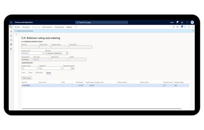 Cut costs and eliminate time spent on manual transportation tasks. C.H. Robinson’s Dynamics 365 Finance and Operations integration is the key to maximizing the ERP you already use. Combine the world’s most powerful logistics platform with the flexibility of Microsoft’s Dynamics 365 for more agile transportation processes that support your end customer.