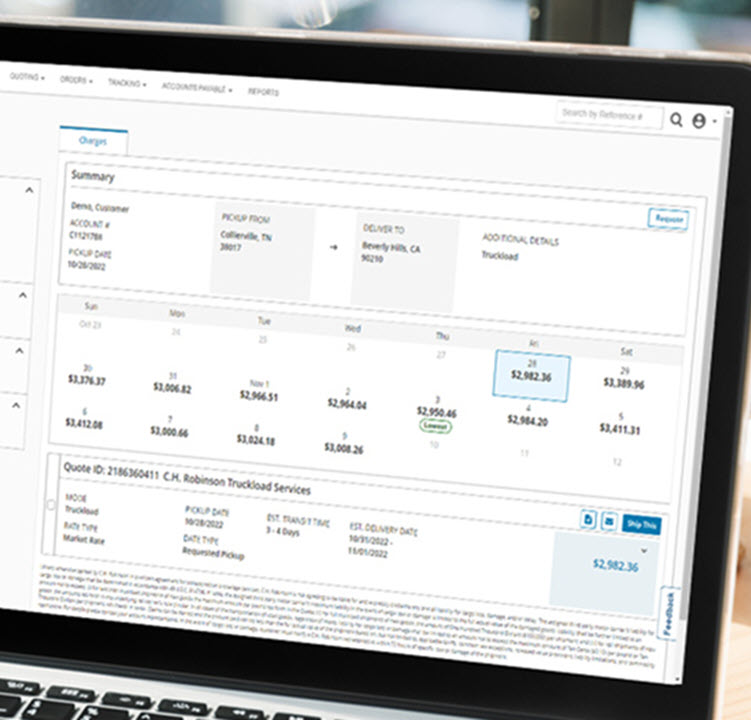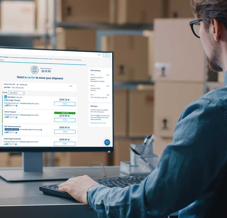 Quote your single shipments and manage your complex bidding exercises with a single provider. Discover the many ways to streamline your freight purchasing process with automated, competitive, and securable freight rates. Technology availability varies by region. Contact us to learn more about the tools and pricing solutions available in your area.