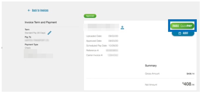 NOTE: QuickPay terms will only begin once an invoice is uploaded on Triumph Payments and your paperwork has been approved.