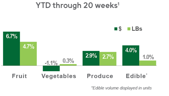There has been balanced growth in dollar sales and pounds across all regions thru 20 weeks. The South Central, Plains, and Great Lakes continue to hold the top 3 spots for growth.