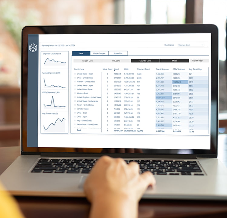 Consultez et comparez vos émissions de carbone pour tous les envois aériens, à chargement complet (FCL) et à chargement partiel (LCL) au fil du temps. Utilisez ces informations pour renforcer les efforts de durabilité de votre chaîne logistique.