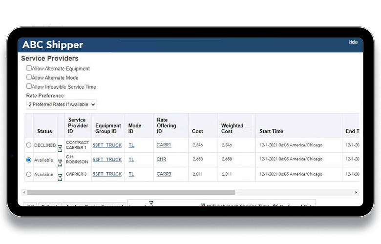 세계 최대의 물류 플랫폼 중 하나를 세계에서 가장 많이 배치된 클라우드 기반 TMS 솔루션과 결합함으로써 시간과 비용을 절약할 수 있습니다. 그리고 북아메리카의 어느 누구보다도 더 많은 트럭 화물을 싣고 있어서, 우리는 타의 추종을 불허하는 트럭 용량을 보장합니다.