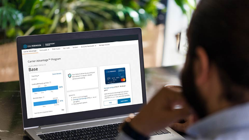 所有特约运输公司均会自动成为我们的 Carrier Advantage 计划成员,但您获得的福利取决于自身努力。我们通过提供燃油、维护和 Quick Pay 选项方面的折扣,对优质服务予以表彰。